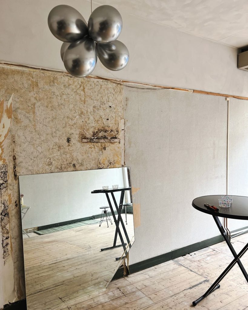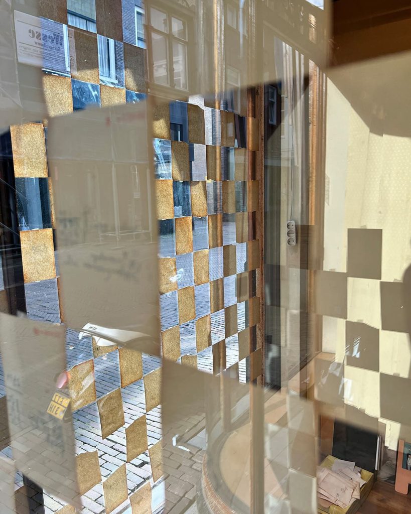 In de kelder vonden we een hele doos vol oude kassabonnetjes. Met wat geduld en creativiteit kregen ze een nieuw leven op de ramen tijdens de verbouwing. De reacties waren geweldig!